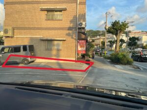 こちらのお店の建物側に2台縦列みたいな感じで。